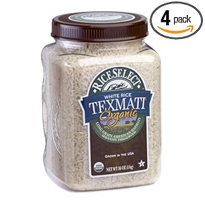 RiceSelect Organic Texmati White Rice, 36 Ounce Jars (Pack of 4) top deals